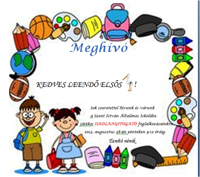 A leendő 1. osztályosok szülői értekezlete 2015. június 24-én (szerdán) 17 órakor az iskola Szent István tér 3. szám alatti telephelyén.